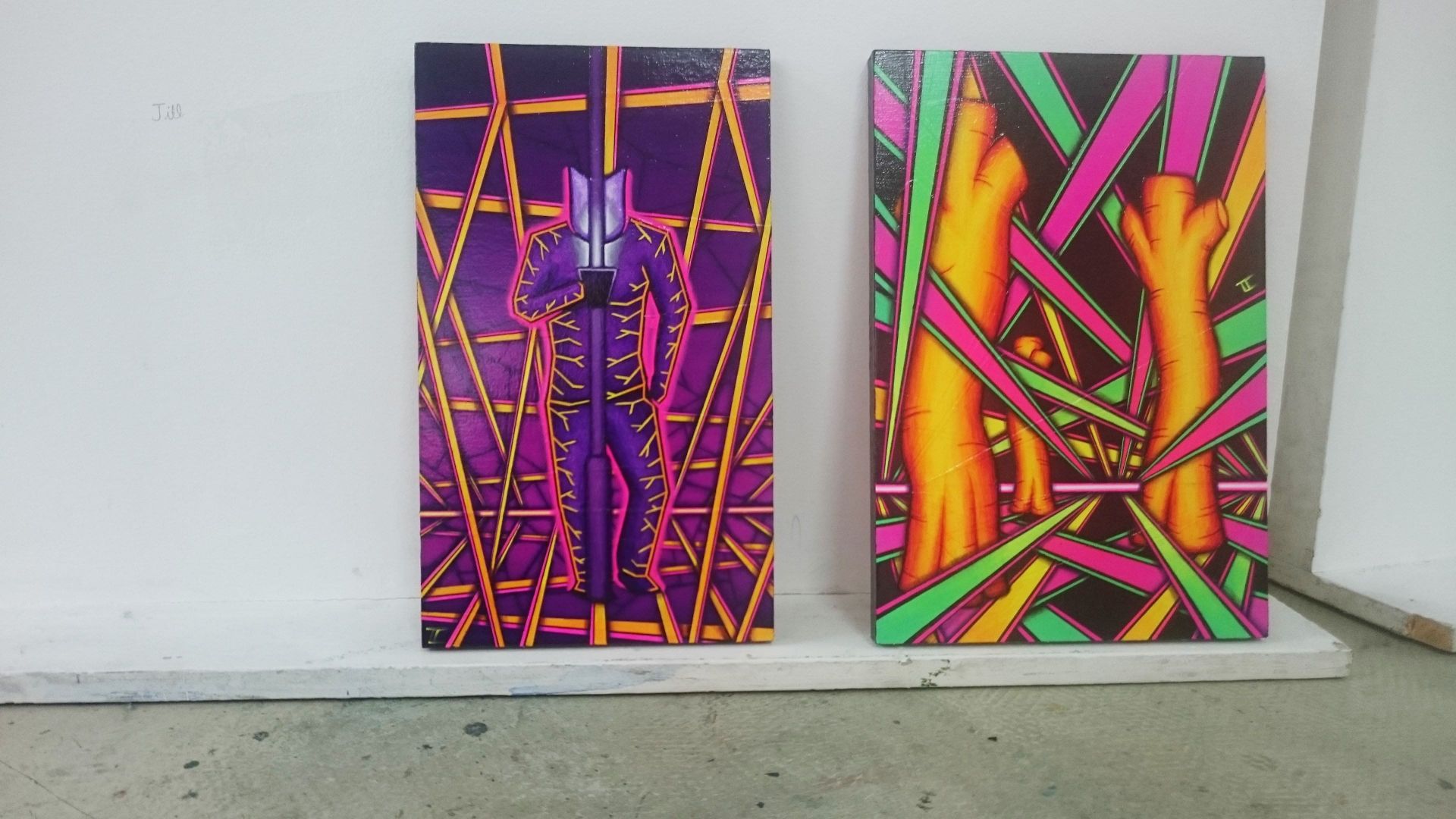 Arbeiten verschiedener TeilnehmerInnen, die einen Atelierplatz im °KUNSTPOL haben.
